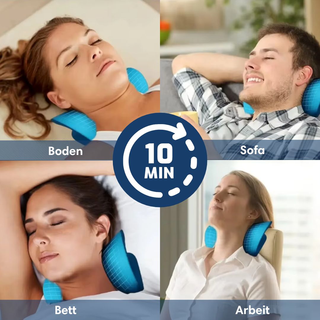 Mit nur 10 Minuten täglicher Anwendung unseres Nacken-Traktionskissens kannst Du Nackenschmerzen, Spannungs-kopfschmerzen und Haltungsschäden effektiv vorbeugen. Egal ob durch langes Arbeiten am Schreibtisch oder ständiges Scrollen am Handy – unser ergonomisches Design streckt den Nacken in einem optimalen Winkel, um Verspannungen zu lösen und die Muskulatur zu entspannen. So kannst Du chronische Beschwerden vermeiden, bevor sie zu ernsteren Problemen führen. Behandle die Ursache, nicht nur die Symptome – ganz einfach von überall.